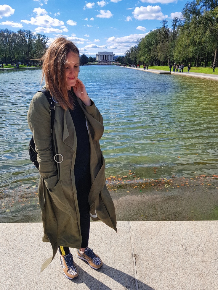Esta foto la sacamos frente al estanque reflactante del monumento a Lincoln (que es el que se ve chiquito al fondo), el paseo también es lindísimo y van a sacar unas fotos increíbles!