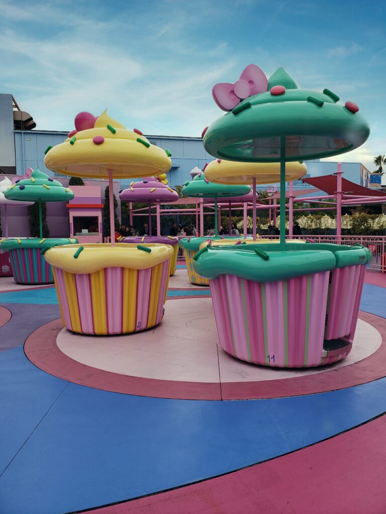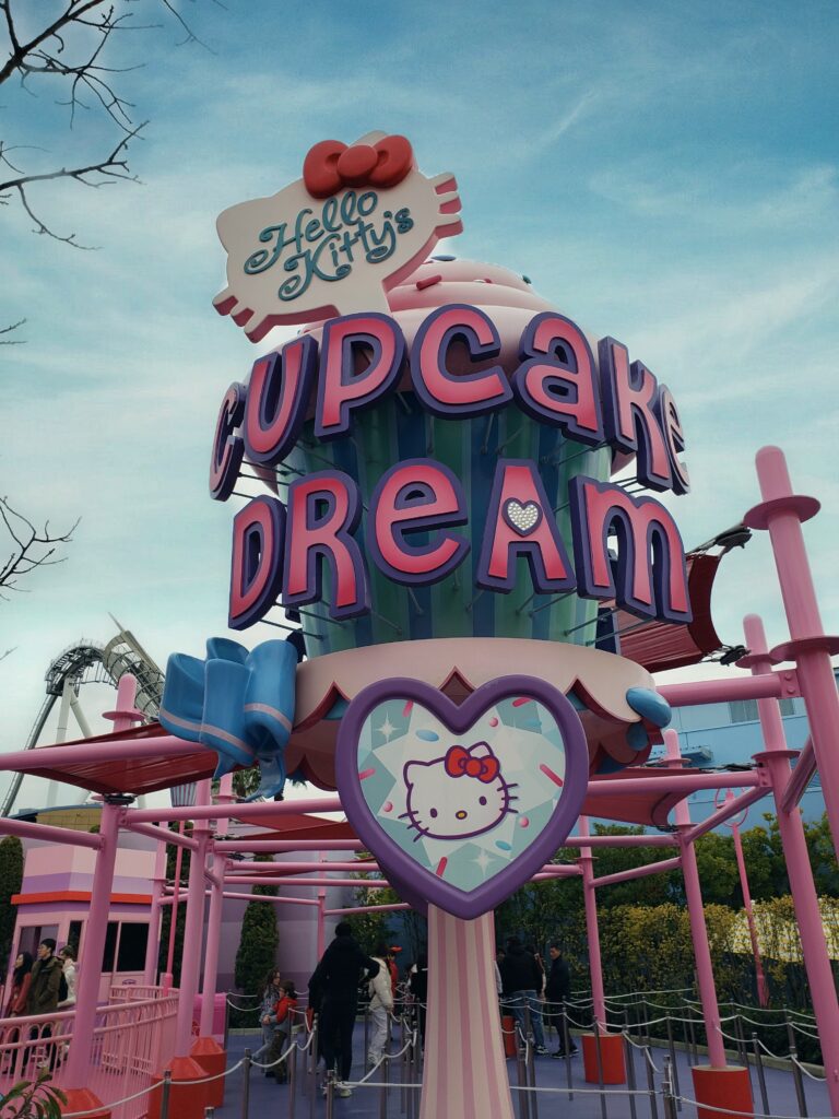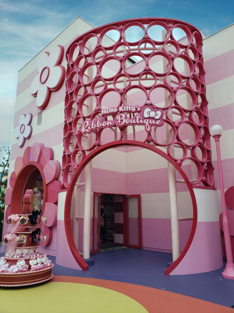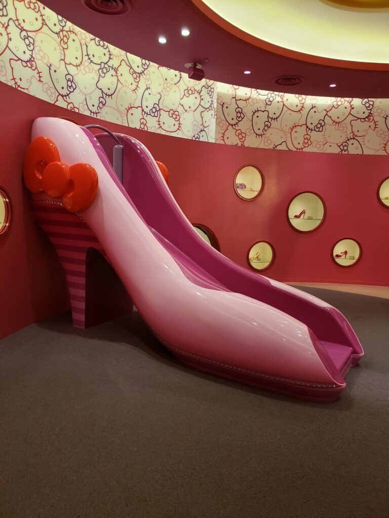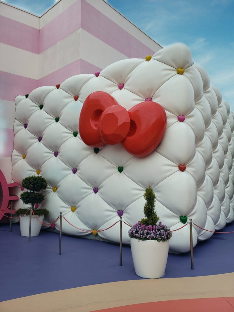 Tiene parte techada y parte descubierta, con juegos y tiendas. Tiene una atracción especial donde podés conocer «personalmente» a Hello Kitty y sacarte fotos con ella. Una vez que ingresas, el recorrido te va llevando por un museo donde podés ver sus moños y zapatos, dependiendo de la época y de la ocasión de uso.