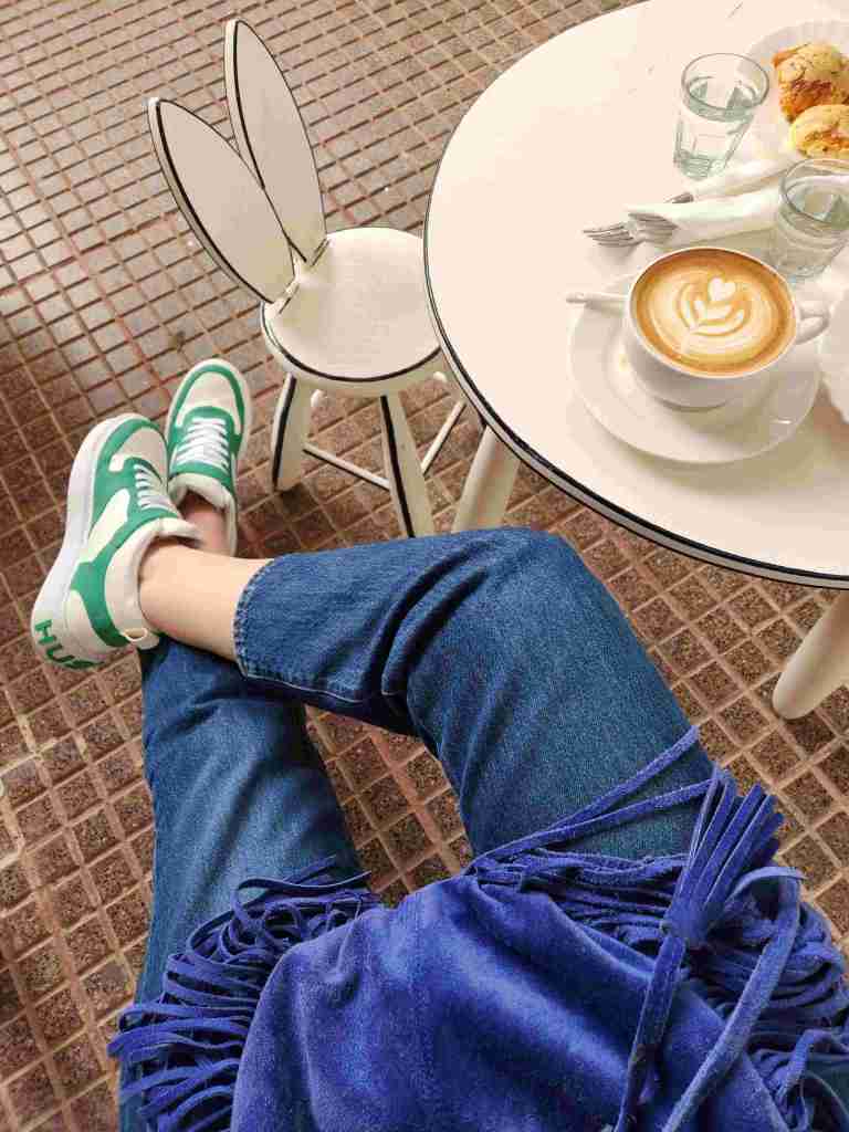 Este fue mi look elegido para recorrer super cómoda y canchera. Tomé cafecito en este bar precioso que parece en 3d.