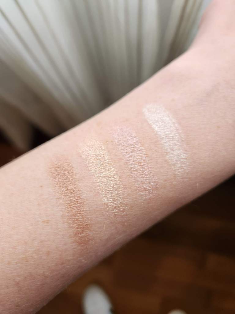 Esta paleta de ensueño tiene cuatro tonos luminosos y super pigmentados para usar como iluminadores o rubor para un brillo personalizable detrás del escenario que amplía los límites del resplandor. Yo también lo uso en los ojos, queda divino.