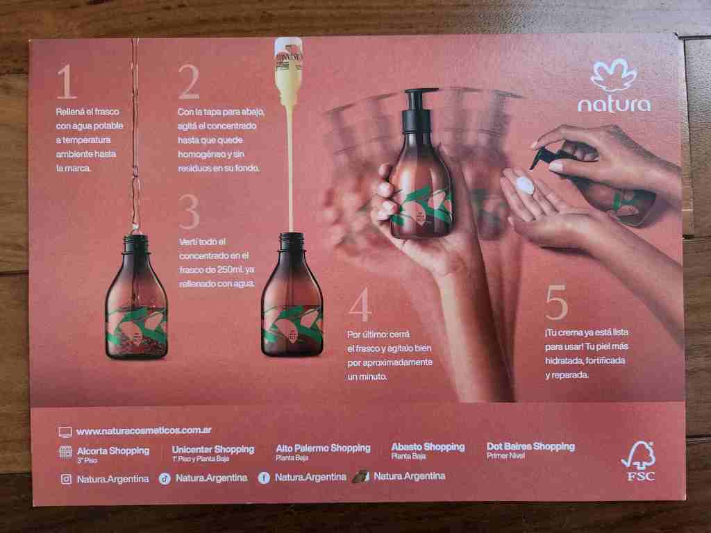 El kit viene con el concentrado y con un envase que se rellena con agua + el concentrado. Me parece una propuesta muy innovadora y la crema es lindisima.